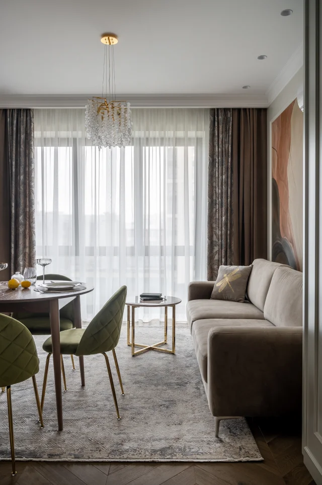 В проекте использованы основные стилевые решения, например: современный минимализм с элементами лофта, а также умное освещение, скрытое хранение, авторская мебель.